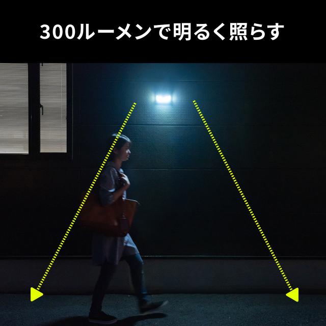 ⇒ご購入の前にご確認下さい玄関前やガレージに設置することで、暗い足元を明るく照らす。コンセントが要らないソーラー充電式のLEDセンサーライト。人が通ると最大300ルーメンの明るさで点灯。【WEB限定商品】