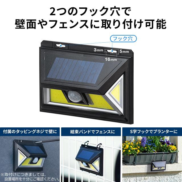 ●人感センサー付きLEDライトです。●コンセントが要らないソーラー充電式です。