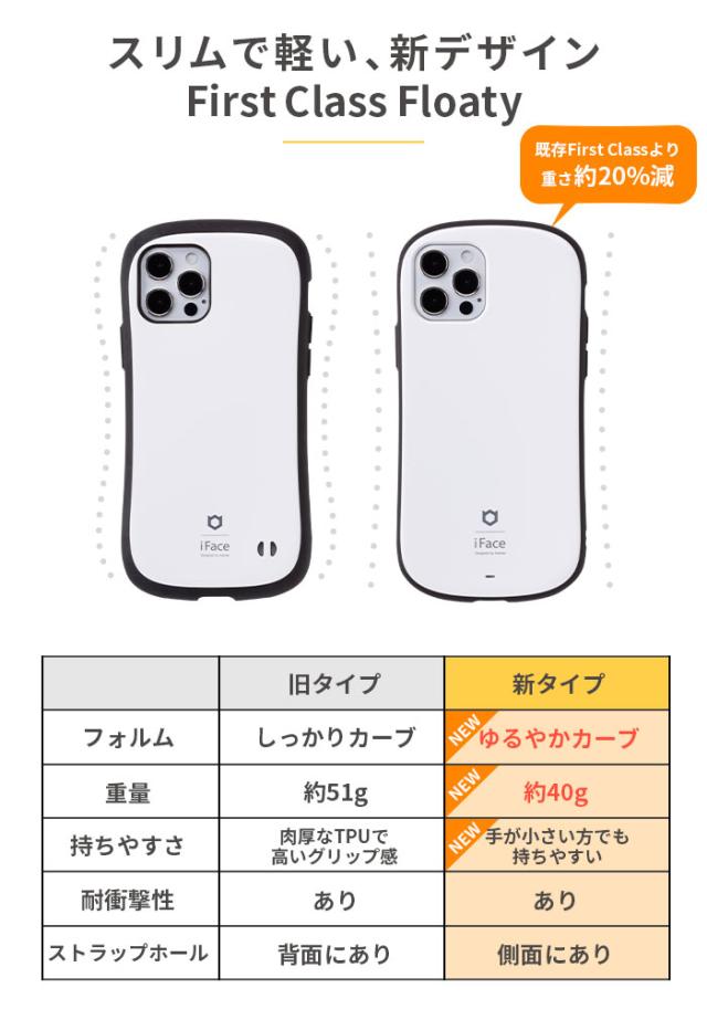 iFace First Class Floatyケースは、12/12Pro用の場合で従来のFirst Classと比べ約11g軽量化しています。
