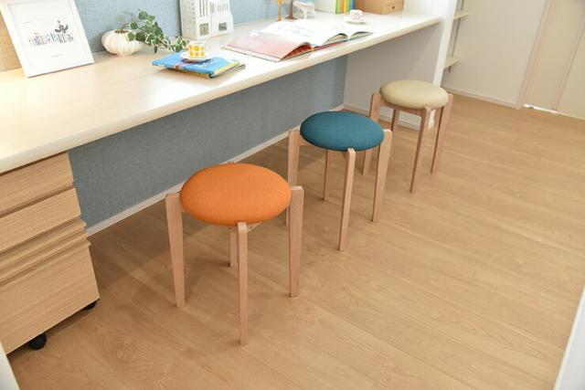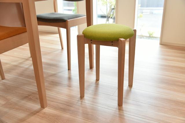やさしいファブリック素材を張地にした木製スツールが登場