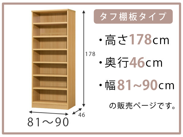 オーダー本棚 タフ棚板 幅81-90cm 奥行46cm 高さ178cm ( 収納棚 書棚 本棚 オーダー ラック 壁面収納 書庫 日本製 オーダーメイド 文庫本 コミック フリーラック )