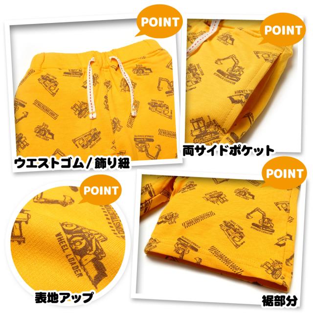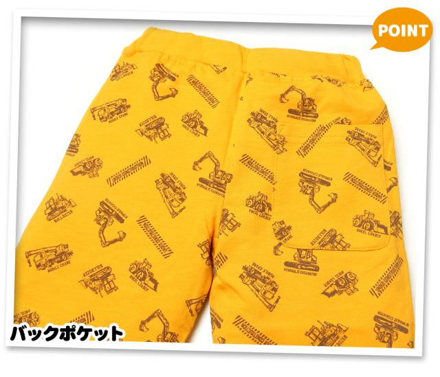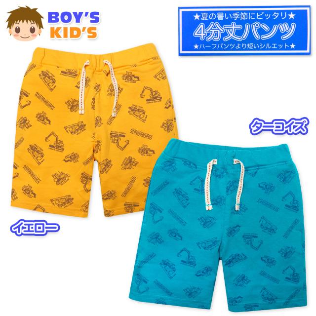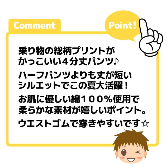 【送料無料】男児 キッズ 4分丈パンツ 綿100% 乗り物 総柄 飾り紐 ポケット ウエストゴム ボトムス 子供服 男の子 100cm 110cm 120cm 130cm nw-0338【メール便対応】