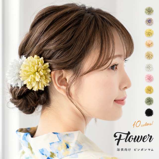 浴衣 髪飾り 花 菊 ピンポンマム フラワー ショートヘア 緑 紫 金 ピンク 黒 黄色 クリップ 安全ピン コサージュ 小さい ヘアアクセサリー 帯飾り レディース