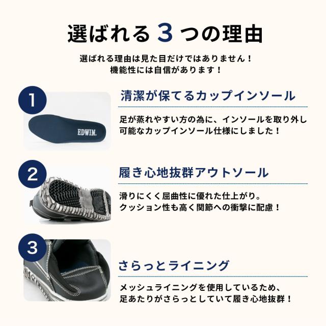 安全靴 メンズ かかとが踏める 軽量 スニーカーサンダル 衝撃吸収 クッション性 おしゃれ 作業靴 EDWIN エドウィン esm104|正規販売店