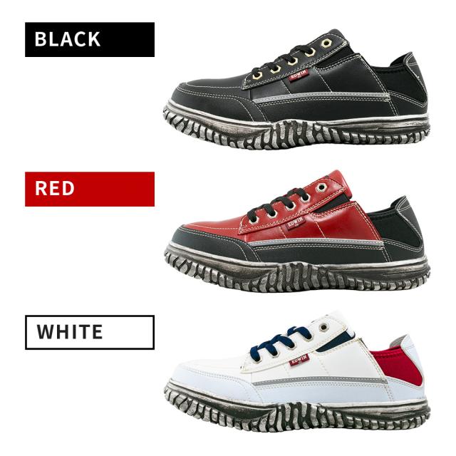 キーワード/ 安全 靴 セーフティーシューズ プロテクティブスニーカー キックバックスニーカー メンズスニーカー 作業スニーカー 安全スニーカー 紳士靴 軽量 先芯 鋼鉄先芯 作業用 現場用 軽作業 着脱簡単 キックバック メッシュ 蒸れない BLACK RED WHITE black red white ブラック レッド ホワイト 黒 赤 白 くろ あか しろ