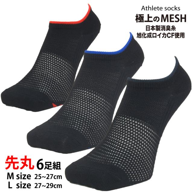 靴下 メンズ スポーツソックス くるぶし ロイカCF消臭 通気性 極上抗菌 吸汗速乾 6足セット くるぶし スニーカー丈 黒 25cm-27cm/27cm-29cm