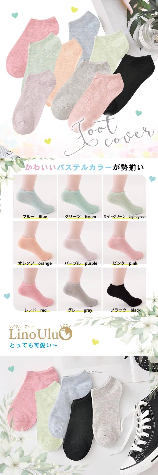[5足セット]フットカバー 脱げない レディース くるぶし 靴下 くつ下 ショート スニーカー ソックス ムレない 無地 パステルカラー 大人 かわいい おしゃれ プチプラ フリーサイズ 薄手 通気性抜群 防臭 効果 春 夏 リノウルフット リノウル