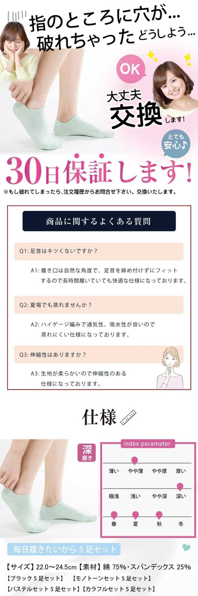 - 生地は薄手だけど、私の場合はオールシーズン、家用に良いと思った! パステルカラーで5足セットの色も気に入りました。 また、リピするかもしれないです。