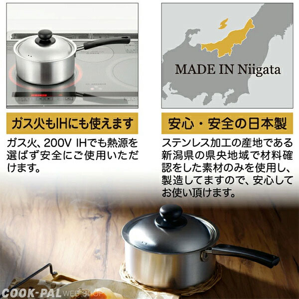 ガス火もIHにも使える、ステンレス製の鍋。