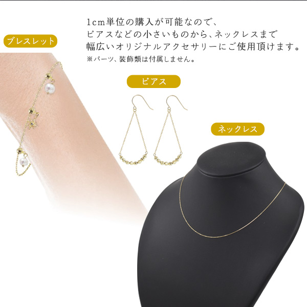 K18 あずきチェーン 最小1cmからオーダー可能 カットチェーン 超極細 0.7mm 4面カット チェーン 金18 アクセサリーパーツ アクセ パーツ ネックレスチェーン k18 18k 素材 手作り アクセサリー 素材 手芸 ペンダント ピアス ブレスレット アンクレット
