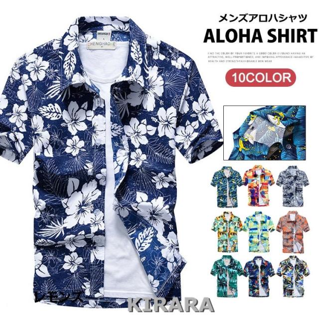 アロハシャツ メンズ シャツ 花柄 総柄 薄手 涼しい ビーチシャツ 半袖 スリム 大きいサイズあり お兄系 通気 夏物 カジュアル 速乾 おしゃれ 夏新作 開襟シャツ トップス メンズファッション Tシャツ