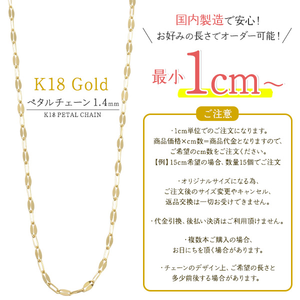 K18 ペタルチェーン 最小1cmからオーダー可能 カットチェーン 幅1.4mm チェーン 金18 アクセサリーパーツ 素材 手作りアクセサリーパーツ アクセ パーツ ネックレスチェーン k18 18k アクセサリー 手芸 ペンダント ピアス ブレスレット アンクレット ブローチ 飾り 装飾