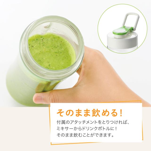 付属のアタッチメントを取り付ければ、ミキサーからドリンクボトルに!そのまま飲むことができます。
