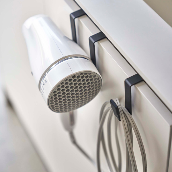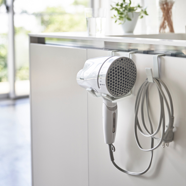 収納場所に困りがちなドライヤーを収納できるドライヤーハンガーです。無駄のないシンプルなデザインで主張しすぎず、洗面周りがすっきりと片付きます。