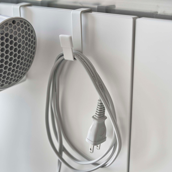 ドライヤーハンガーとコードホルダーはつながっていないので、お好みの位置に設置できます。