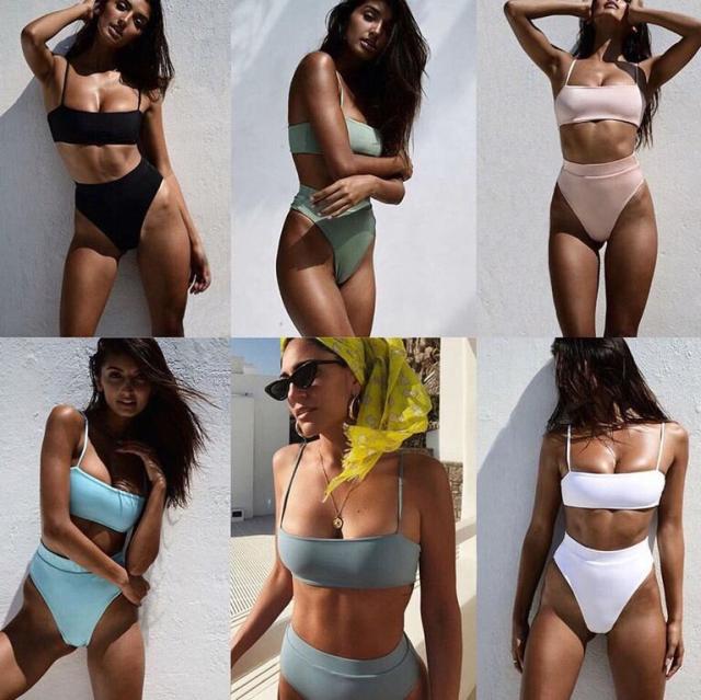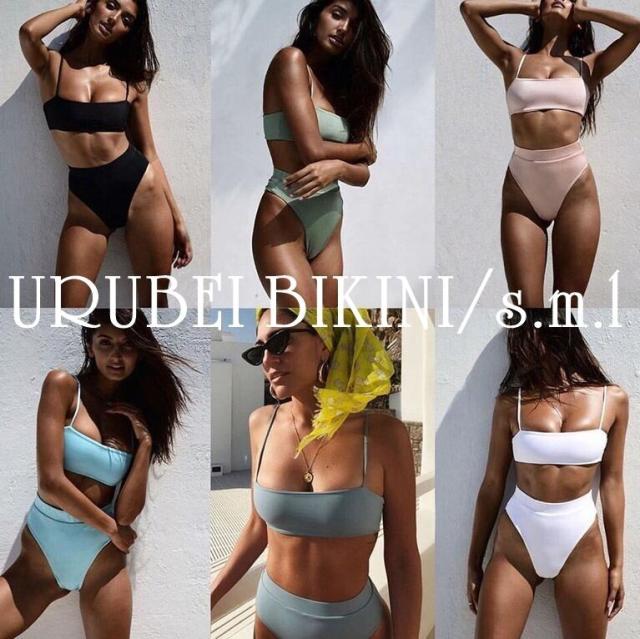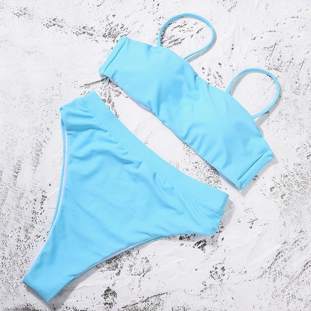 水着 レディース 水着 ブラジリアン バンドゥ ビキニ 人気 パッド付き ハイウエスト プール 海 温泉 ママ セクシー 無地 水20 水30 セクシー水着