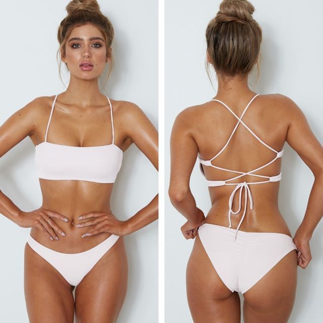 後ろのレースアップデザインがセクシーで大人かわいい、バンドゥビキニ。