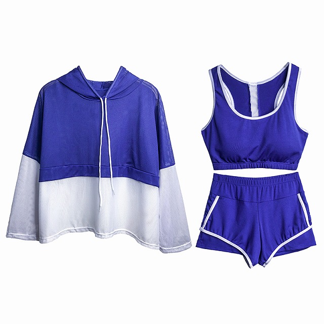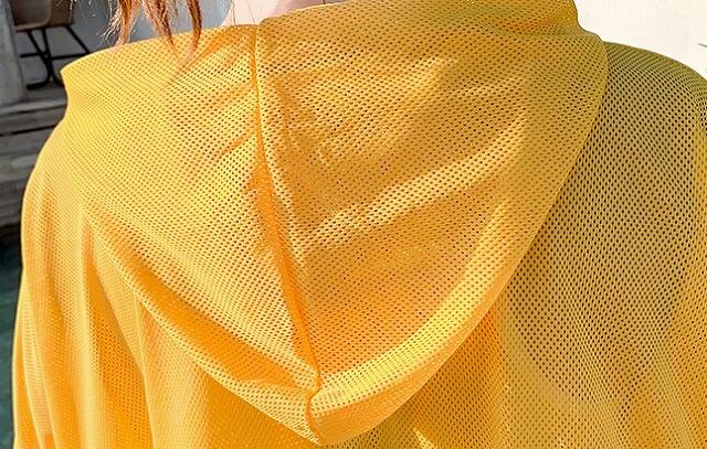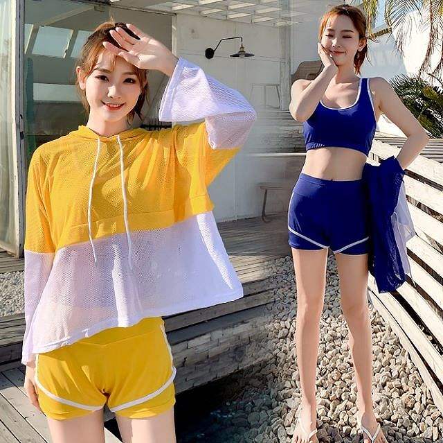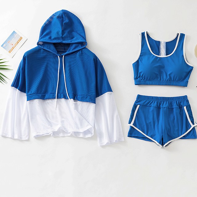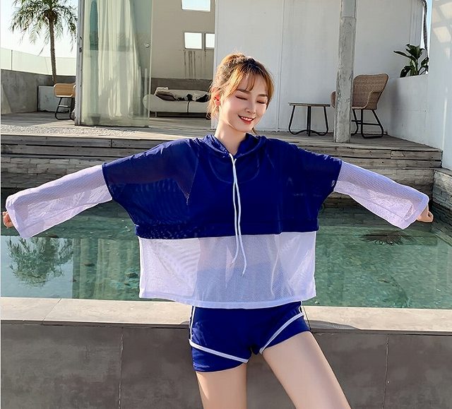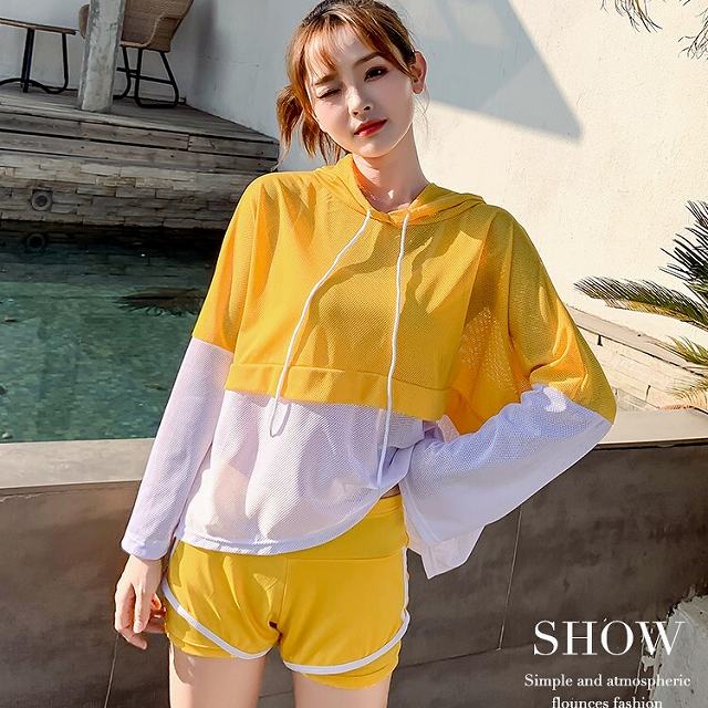 通気性のいいメッシュ素材のパーカーが可愛い、水着3点セット。