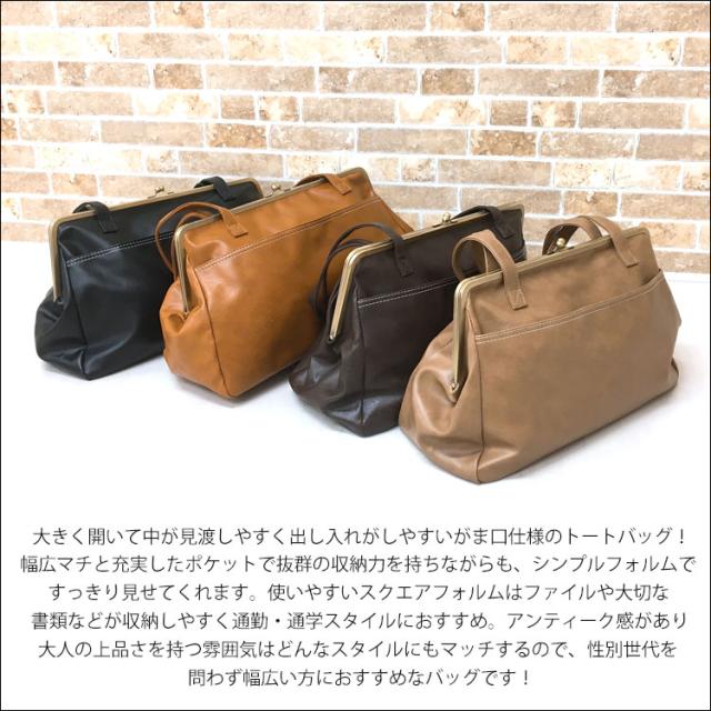 平日12時 平日祝9時即出荷 トートバッグ レディース a4 大きめ 革 がま口 バッグ ファスナー付き 2way おしゃれ 大人 かわいい ブランド 軽い 大容量 通勤 がまぐち 鞄 マザーズバッグ トート ショルダー 肩掛け 女性 メンズ シンプル 横 無地 レザー ボストン 旅行 ママ