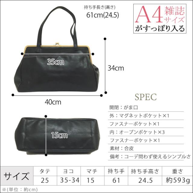 レディーストートバッグ a4サイズ 大きい がま口バッグ ファスナー 2wayバッグ 通学 ママ 女子 女の子 男子 男の子 出張 仕事 フェイクレザー マザーズ ペットボトル 大きく開く 母の日 彼女 妻 誕生日 プレゼント ギフト