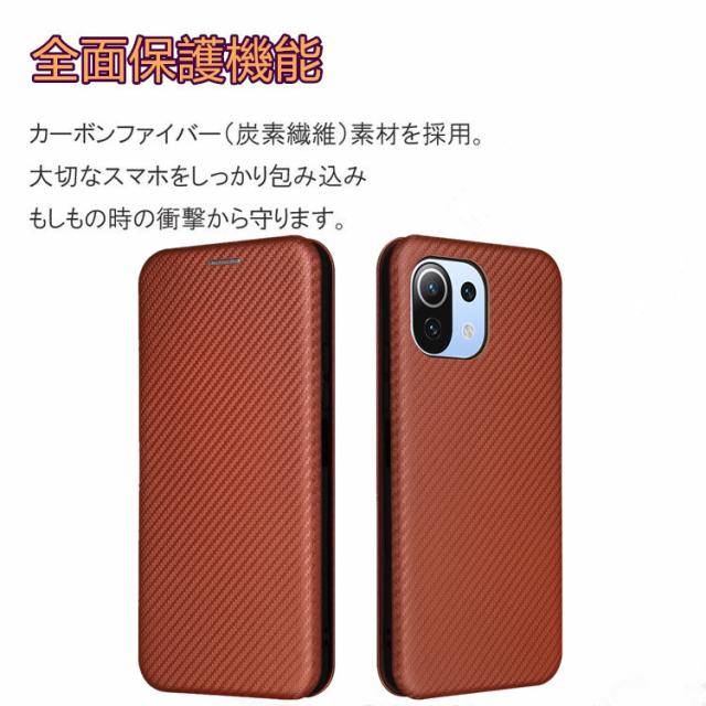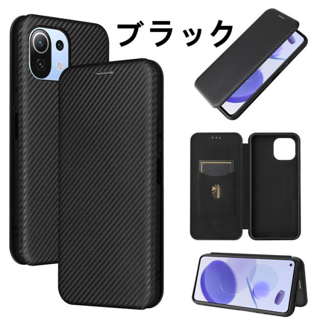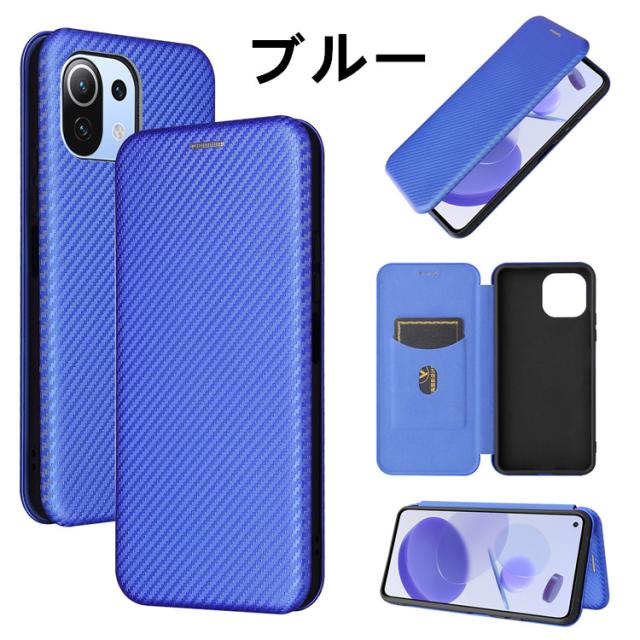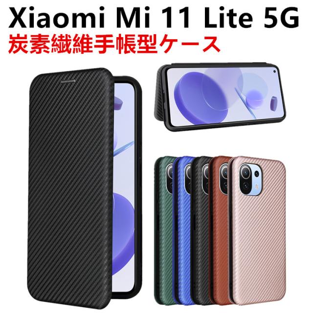 Xiaomi Mi 11 Lite 5G 手帳型 薄型 カーボンファイバー 炭素繊維カバー TPU 保護バンパー 財布型 マグネット式 カード収納 落下防止 ホルダ 横開き リンクストラップ付き