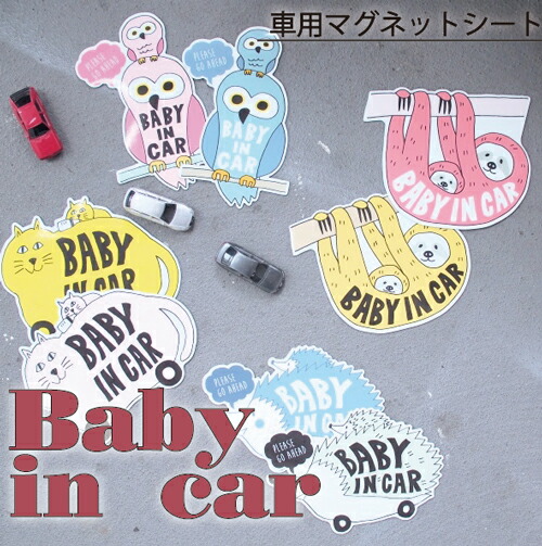 baby in car マグネット 車 可愛い おしゃれ ネコ 猫 ねこ ハリネズミ フクロウ ナマケモノ ベビーインカーマグネットシート