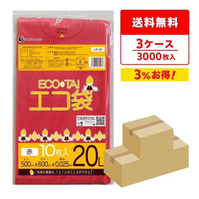 【まとめて3ケース】LR-20-3 ポリ袋 20リットル 0.025mm厚 赤 10枚x100冊x3箱 / ゴミ袋 ごみ袋 送料無料