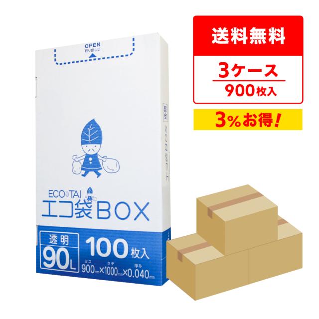 ポリ袋 ゴミ袋 箱タイプ 90リットル 透明 90x100cm 0.040mm厚 100枚x3小箱x3箱 HK-930-3 ごみ袋 90l BOXタイプ 箱型 収納 クリア サンキョウプラテック 送料無料