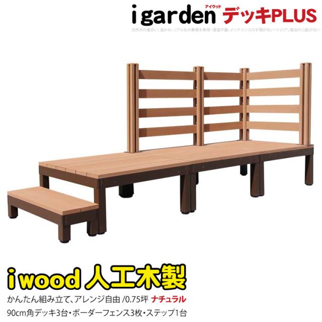 ウッドデッキPLUS 0.75坪 7点セット ナチュラル デッキ本体3点 ボーダー3点 ステップ1点 人工木床板 アルミ合金ボディ高さ4cm調節可能 アイウッドデッキPLUS 色あせない 腐らない シロアリ防止 床面ザラザラ加工 リアルな木質感