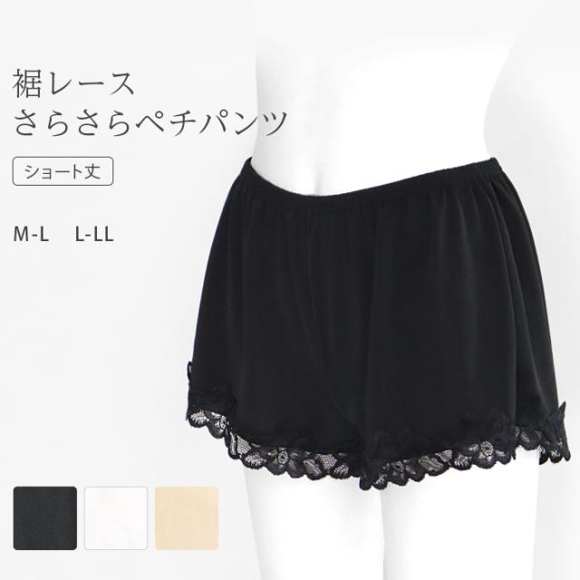 ペチパンツ ペチコート 透け防止 キュロット ショート丈 レース 裾レース インナー 下着 タップパンツ インナーパンツ *2-2t *y3-5t