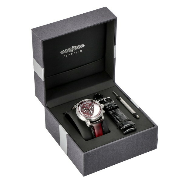 この赤い文字盤は、1929年に飛行船LZ127号が世界一周の偉業に挑んだ際、飛行船の機体に映し出された美しい夕日の色を体現しています。