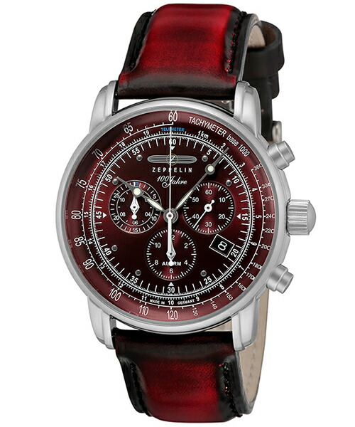 ツェッペリン 100周年記念シリーズ 日本限定モデル 8680-5 メンズ 腕時計 クオーツ クロノグラフ 革ベルト レッド