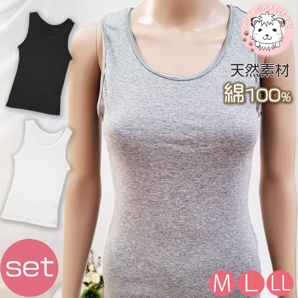 タンクトップ 3枚セット 綿100% インナーシャツ レディース インナー 柔らか ふんわり 白 黒 グレー M/L/LL