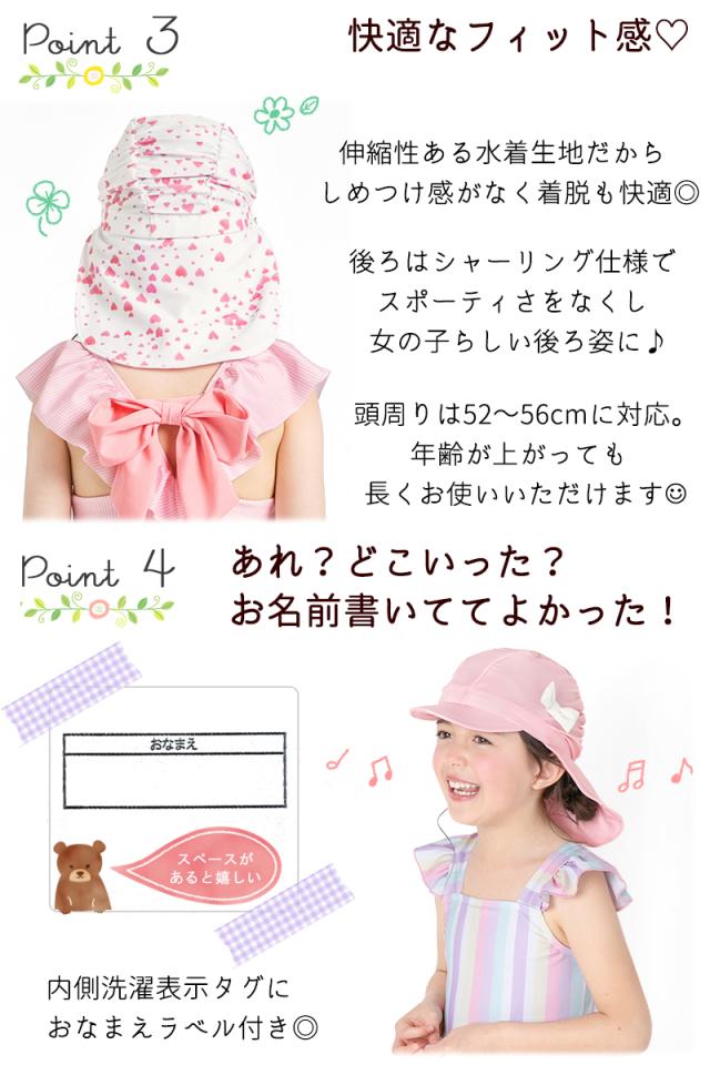 商品カテゴリ : 子ども 女の子 キッズ 子供 水着 スイムキャップ キャップ 帽子 水泳帽 UV UPF50+ 速乾 幼稚園 小学生 低学年 保育園 保育所 可愛い お洒落 ナチュラル 花柄 ハート リボン 日よけ つば