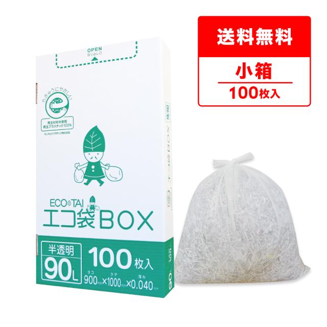 ポリ袋 ゴミ袋 箱タイプ 90リットル 半透明 90x100cm 0.040mm厚 100枚 HK-940kobako ごみ袋 90l BOXタイプ 箱型 収納 ホワイト サンキョウプラテック 送料無料