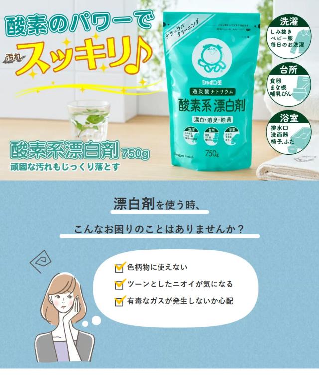 シャボン玉石けん 酸素系漂白剤 750g(過炭酸ナトリウム) 掃除 ナチュラルクリーニング 掃除用洗剤 大掃除 エコ掃除 洗濯 漂白 消臭 無添加 石けん 石鹸 せっけん 自然派