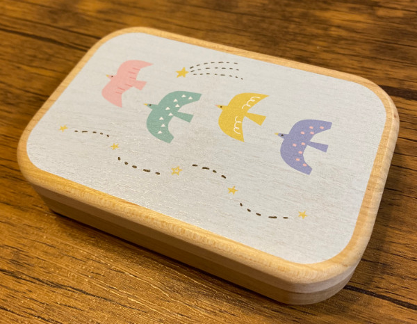 木目が美しく頑丈で上質な山桜を使用した純日本製の乳歯ケースです。 へその緒を箱に入れて保管するように、大切なお子さまの乳歯を素敵なケースに入れて残してみませんか。自然をイメージした温かみのあるデザインで、可愛い4色の小鳥が空を飛ぶ素敵な絵柄は男女問わずお選びいただけます。