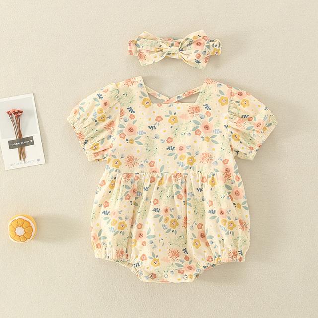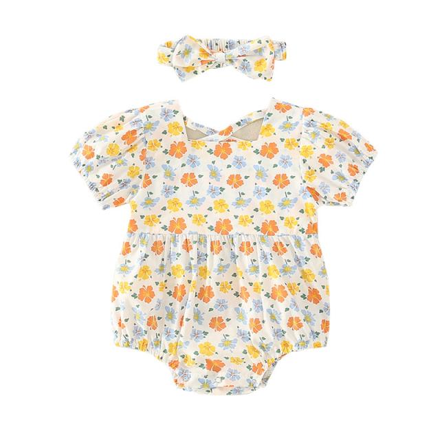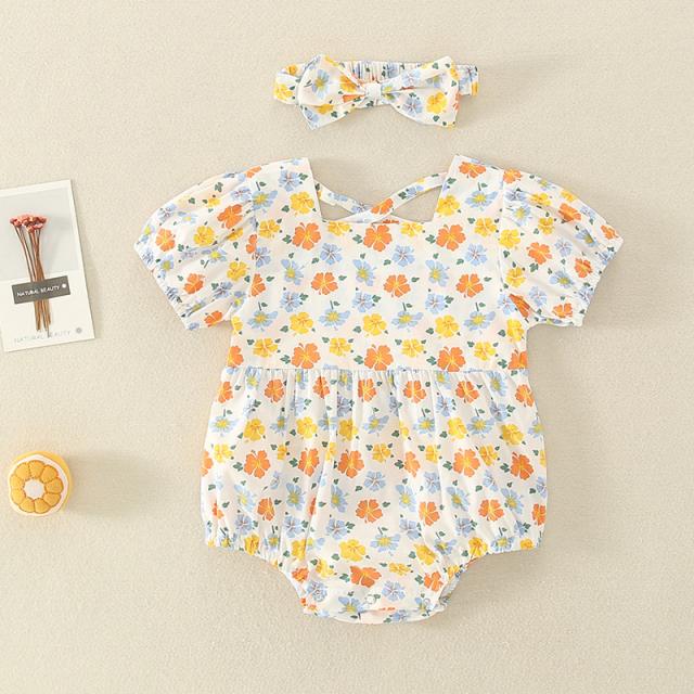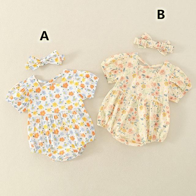 2点セット 半袖 さくらんぼ ロンパース カバーオール ヘアバンド 女の子 プレゼント 夏 子供服 赤ちゃん ベビー服 66 73 80 90 出産祝い