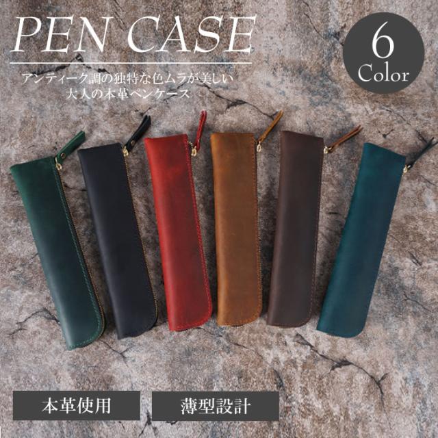 ペンケース 本革 牛革 コンパクト 筆箱 レザー ファスナーペンケース スリム 大人 おしゃれ シンプル 小さい オフィス 薄い メンズ レディース ギフト プレゼント