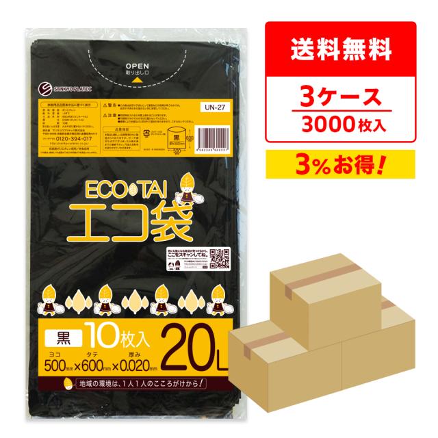 【まとめて3ケース】UN-27-3 ポリ袋 20リットル 0.020mm厚 黒 10枚x100冊x3箱 / ゴミ袋 ごみ袋 送料無料