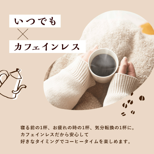 ※パッケージデザインのリニューアルに伴い、お届け時に旧パッケージと新パッケージが混在している可能性がございます。ご容赦いただけますようお願い申し上げます。コーヒー本来のコクと香りを楽しめる、コーヒー好きのためのカフェインレスコーヒー。