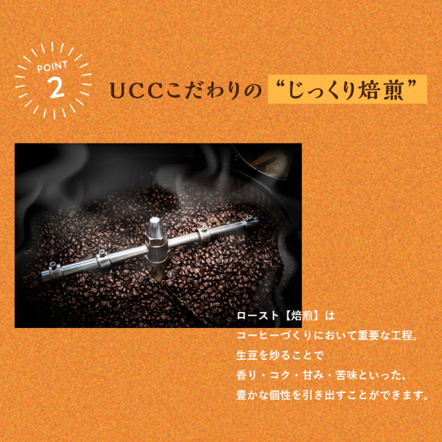 ◆UCCこだわりの「じっくり焙煎」を行い、コーヒー豆の持つ甘みとコクを引き出し、最大限のおいしさを追求。