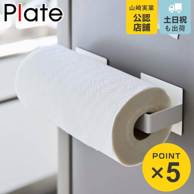 Plate キッチンペーパーホルダー マグネット挟み込み式キッチンペーパーホルダー マグネット ( プレート 山崎実業 冷蔵庫収納 ペーパーホルダー キッチンペーパー 収納 タオルハンガー 大判サイズ対応 磁石 )