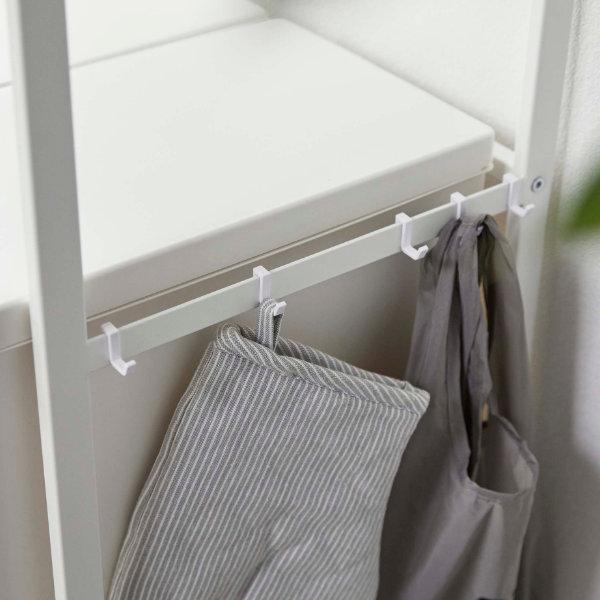 片側に小物を掛けて置くことが出来るフックが4つ付いています。ミトンやエコバッグ、キッチンばさみやスケーラーなどのキッチン雑貨もラック横のフックにひとまとめにして収納すれば、ほしい時にさがす必要もありません。また、調理中にレンジを使ったあとの熱くなった食器も手元にミトンがあればサッと取り出すことができます。