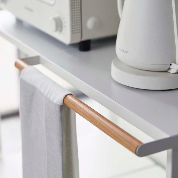 天板にはバーハンガーが付いているので、タオルやふきん掛けとしてお使いいただけます。