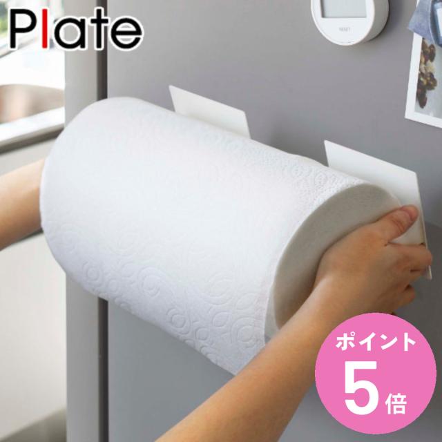Plate キッチンペーパーホルダー マグネット挟み込み式キッチンペーパーホルダー マグネット ( プレート 山崎実業 冷蔵庫収納 ペーパーホルダー キッチンペーパー 収納 タオルハンガー 大判サイズ対応 磁石 )