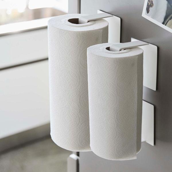 キッチンペーパーだけでなく、布巾やスプレーボトル等をかけておくバーハンガーとしても使うことができます。ライフスタイルに合わせてよく使うキッチンアイテムを冷蔵庫横や壁面にすっきり収納できます。