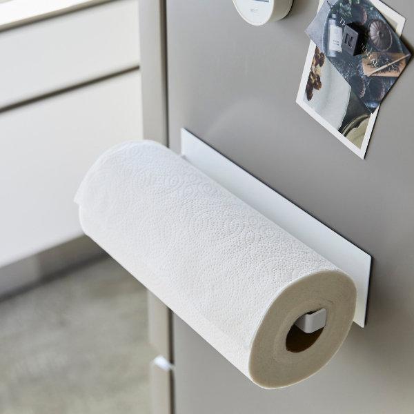 キッチンペーパーだけでなく、布巾やスプレーボトル等をかけておくバーハンガーとしても使うことができます。ライフスタイルに合わせてよく使うキッチンアイテムを冷蔵庫横や壁面にすっきり収納できます。