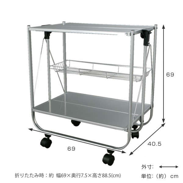 作業台・配膳台・収納などに使える折りたたみ式トローリー