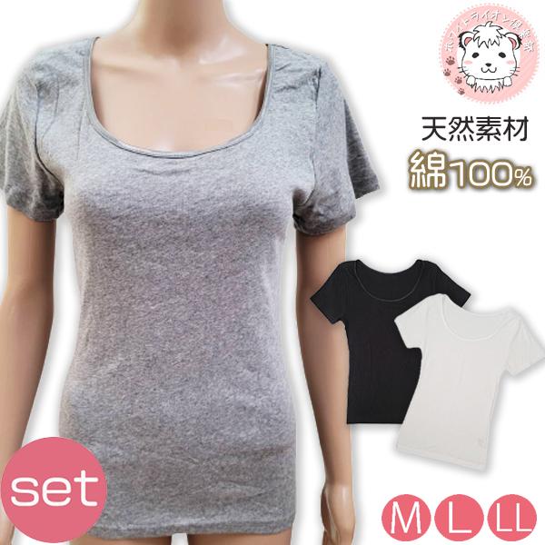 半袖 インナー 2枚セット レディース インナーシャツ フレンチ袖インナー 綿100% 柔らか ふんわり M/L/LL
